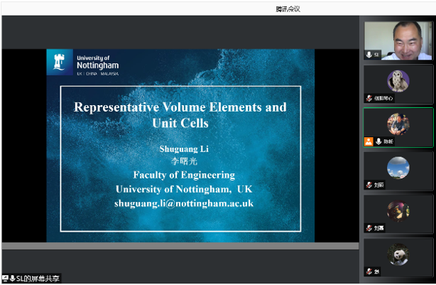 张超教授邀请,英国诺丁汉大学李曙光教授于2021年8月5日至25日开展了题为“Representative Volume Element and Unit Cells”的暑期线上专题班。本次课程的组织依托结构力学行为科学与技术创新引智基地、冲击动力学及其工程应用国际联合研究中心和陕西省冲击动力学及其工程应用重点实验室等科研平台举办,来自韩国伦理片