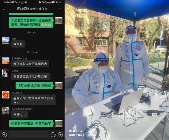 党总支充分发挥基层党组织战斗堡垒作用和党员先锋模范作用,坚持人民至上、生命至上,把疫情防控作为一项重要的政治任务抓紧抓实。及时发动组建了学院以党员领导干部、党支部书记、工会干部、优秀青年教师和党员为主要成员的民航抗疫先锋志愿服务分队。学院院长李玉龙、党总支书记谢发勤带头报名参加学校疫情防控志愿服务,学院工会主席和麟,青年教师戴维、殷之平等协助完成核酸检测任务,民航研究院常务副院长李晨主动参加门卫值勤等任务,党总支副书记袁源带领学工队伍在疫情一线为学生送饭、值勤等,督促学生做好疫情防控工作和思想教育工作。还有吴向清、张哲、孟岭超等一批党员同志主动申请参加志愿抗疫服务。