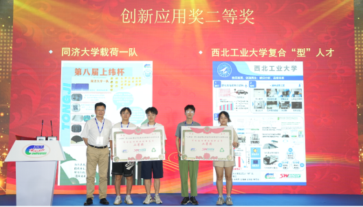 宋德斌、黄庆丹、王健康、王浩哲、朱昊元五位同学(指导老师:张超教授)凭借“锂电池储能夹芯结构”这一作品,荣获创新应用奖二等奖。
