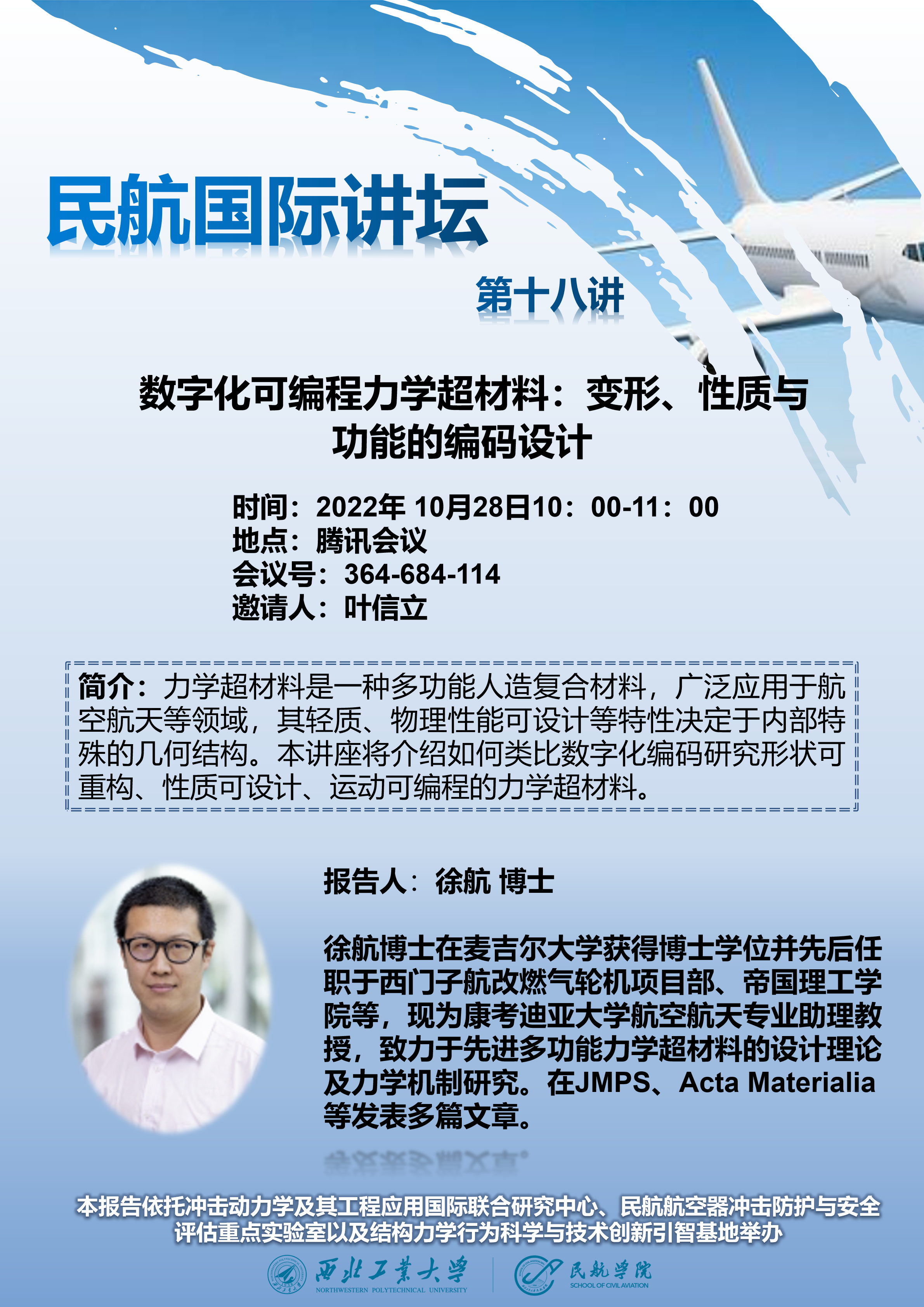 10月28号上午十点,韩国伦理片 拟线上举办“数字化可编程力学超材料:变形、性质与功能的编码设计”专题讲座,届时欢迎各位老师同学参会交流。以下是讲座详细信息: