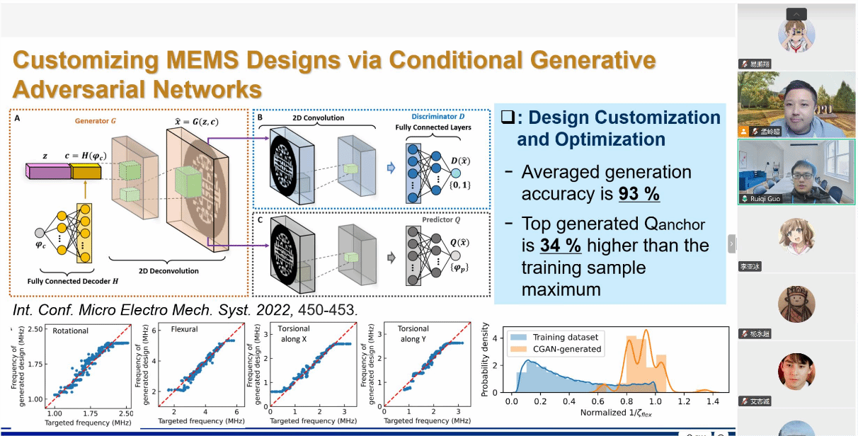 在讲座中,郭博士首先介绍了自己的求学经历和研究方向,随后对机器学习在自由形式结构设计中的应用进行了介绍。他详细介绍了其研究团队提出的一种机器学习逆向设计范式,通过非参数化、拓扑无关的结构表征方式,使神经网络能够直接从数据中学习复杂物理规律,快速精准地替代力学、光学和电磁学的计算。