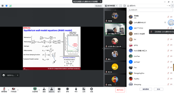 第二十一讲作了题为“Recent progress in modelling the incompressible and compressible wall-bounded turbulence” 的线上讲座,讲座由项俊锋副教授主持,共五十余名校内外师生在线参加了此次讲座。