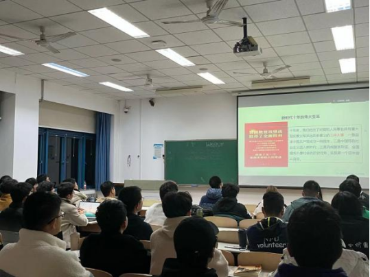 办公室主任易万军在友谊校区西馆XA101教室为2023年秋季入党积极分子和发展对象作《深入学习领会党的二十大精神,推进国防和军队现代建设》专题辅导报告。学院友谊校区42名学员线下参加培训,长安校区的56名学员线上集体参加学习培训。