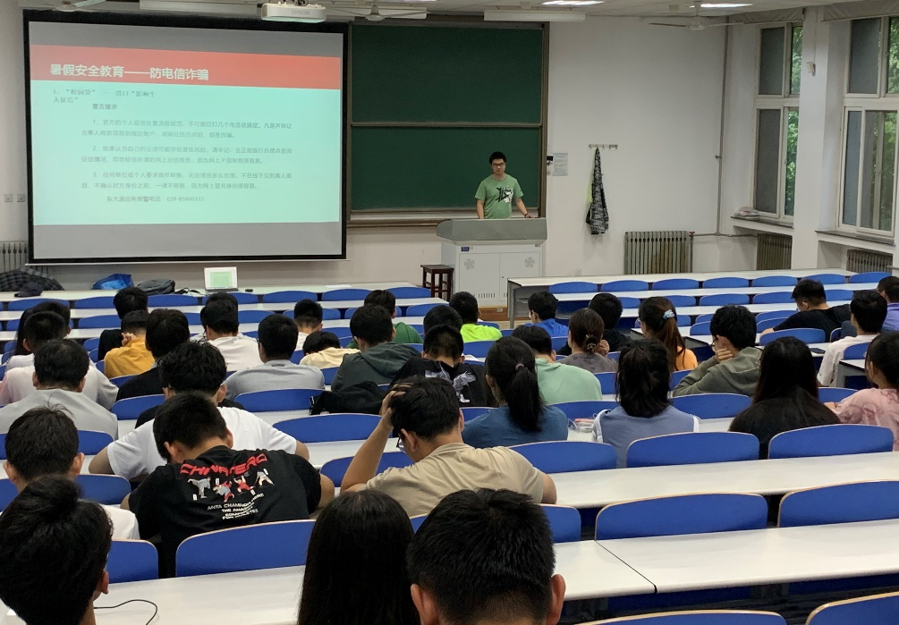 7月2日,学院辅导员刘涛、张猛创、王睿组织2018级、2019级本科生和2020级第二学位学生开展暑假安全教育。辅导员首先对离校和暑期留校注意事项进行了讲解,组织填写《2021年暑假意向表》,要求离校学生到达目的地后及时给辅导员发送短信报平安,同时对暑期留校人员的管理办法进行了讲解,确保大家暑假离校和留校的安全。随后,辅导员从防溺水、防雷电、防治安事故、防交通事故和防食物中毒等几个方面进行了提醒,又重点介绍了电信诈骗的一般手法和防范措施。最后集体学习了中华人民共和国教育部令第12号《学生伤害事故处理办法》。