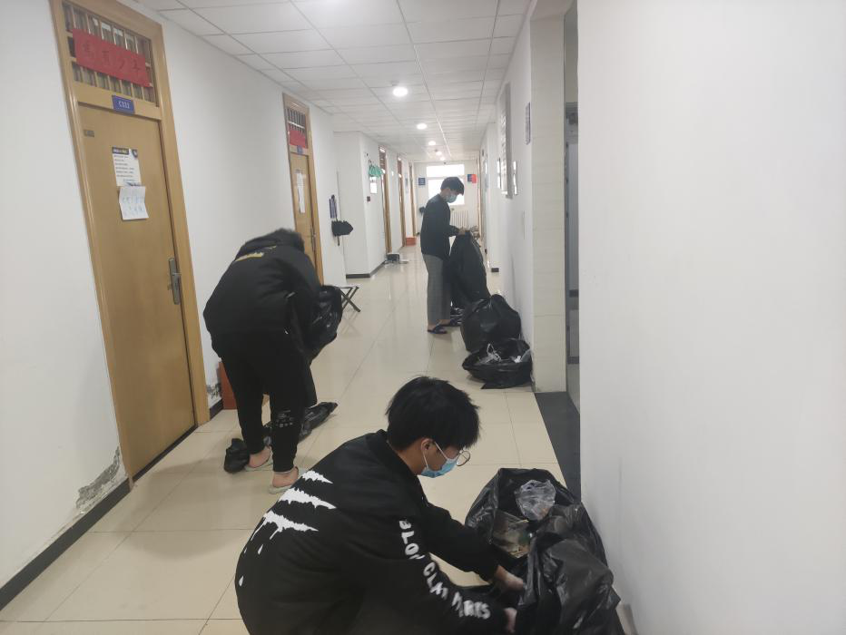 清晨,负责配送餐的志愿者们早早地来到宿舍楼下,开始协助老师核定餐食数量,搬运餐饭,为同学们送餐上门。虽然天气寒冷,但志愿者们却工作地热火朝天。傍晚,志愿者们又会将同学们的垃圾分类处理,统一运送到指定地点,保证了宿舍楼的整洁干净。他们用暖心的服务获得同学们的一致好评,用忙碌的身影诠释着青年志愿者的责任与担当。