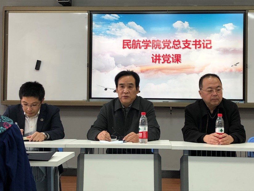 随后,李玉龙院长为毕业生讲授了题为“民航强国战略与新一代民航人“的思政课。他首先代表学院感谢同学们对学院工作的认可和理解,随后结合国际、国内民航业的发展态势,中国新时代发展对民航业的需求和民航相关专业大学毕业生的使命发表了自己的看法,对同学们的职业规划、未来发展、科研工作等提出了希望。他还介绍了学院成立三年多来的建设过程、当前情况和未来愿景,希望同学们将来继续关注和支持学院发展,多回学院看看。