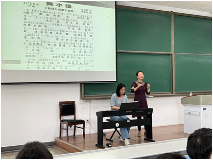 律动节奏训练环节,徐亚娟老师和刘丹老师共同带领同学们合唱歌曲《黄水谣》。刘丹老师指导同学们通过跺脚、拍掌、捻指和拍杯子的方式了解歌曲的节奏,生动且有趣。最后,本次讲座在同学们嘹亮的《黄水谣》的合唱中圆满落幕。