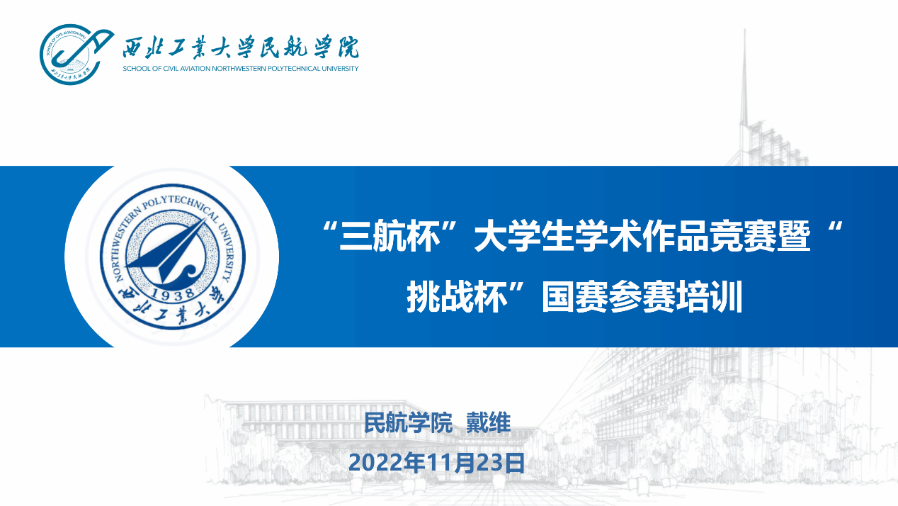 戴维老师作为主讲人,为同学们主讲了主题为《第二十一届“三航杯”大学生学术作品竞赛暨“挑战杯”国赛参赛培训与竞赛指导》的讲座。