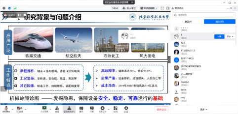 师生开展主题为“信号分解方法前沿及其在故障诊断应用”的线上研讨会,学院多名师生和外校师生合计超过100多人参加了此次研讨会,研讨会由朱军主持。